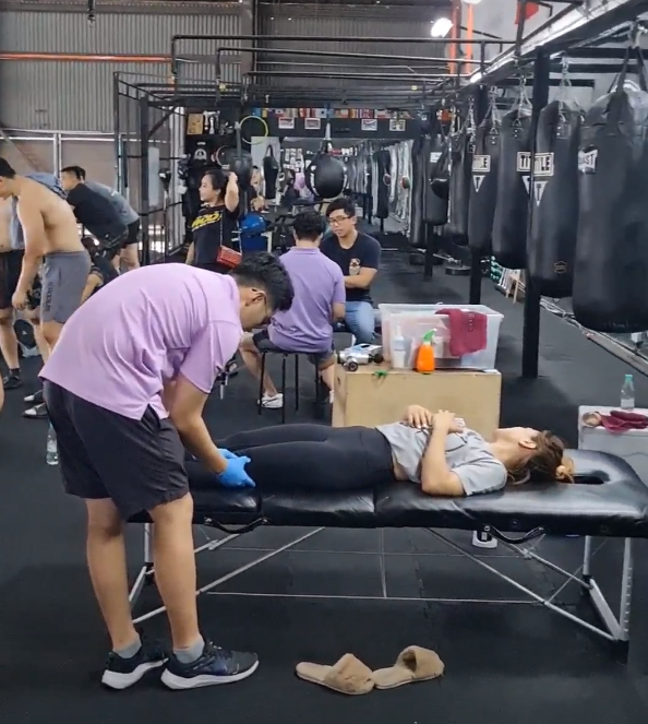 Treating and interacting with the these beasts of athletes was tiring but definitely rewarding! Here are some pictures of our therapists at the event!